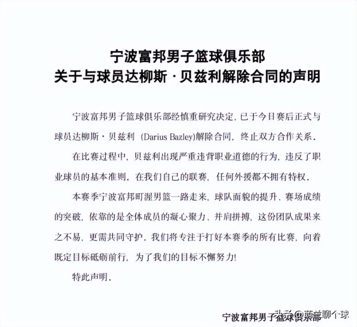 赛后不到一小时,宁波富邦男篮俱乐部火速发布官方声明:“经介意商议决定,厚爱与球员达里厄斯·贝兹利消释公约。在比赛经由中,贝兹利出现严重违抗功绩说念德的看成,违抗了功绩球员的基本准则。在咱们我方的联赛,米兰体育app任何外助都不领有特权。”措辞之严厉、反映之速即,在CBA历史上极为荒原。