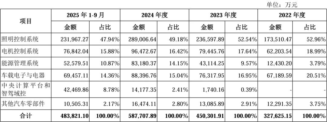 科博达专注于照明限度系统、电机限度系统、能源处治系统、车载电器与电子、中央计较平台和智驾域控等汽车电子家具的研发、坐褥和销售,领有LED光源限度器、LED氛围灯限度器、LED尾灯限度器、中袖珍电机限度系统、机电一体化、DC/DC颐养模块、底盘域限度器、车身域限度器、电磁阀限度器、汽车中央计较平台、智能驾驶域限度器等多类家具。
