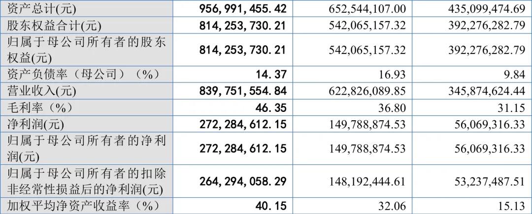 2023年-2025年,公司买卖收入分别为3.46亿元、6.23亿元、8.40亿元;同期达成归母净利润分别为5606.93万元、1.50亿元、2.72亿元。