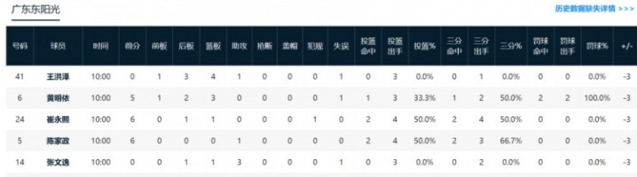 广东:陈家政6分1助攻,米兰体育app官网崔永熙6分1篮板,黄明依5分3篮板。