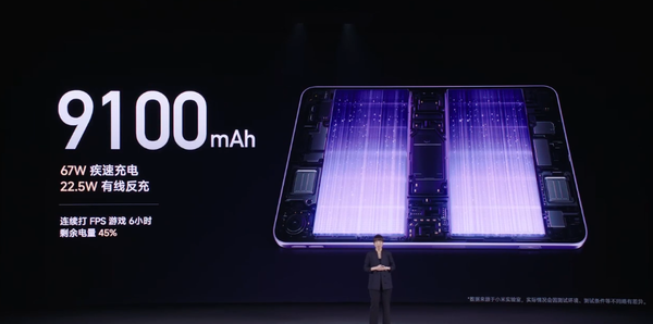 其他方面,REDMIKPad2后置1300万像素镜头,前置录像头为800万像素,内置9100mAh的超大电板,守旧67W的有线充电,守旧Wi-Fi7和蓝牙5.4。