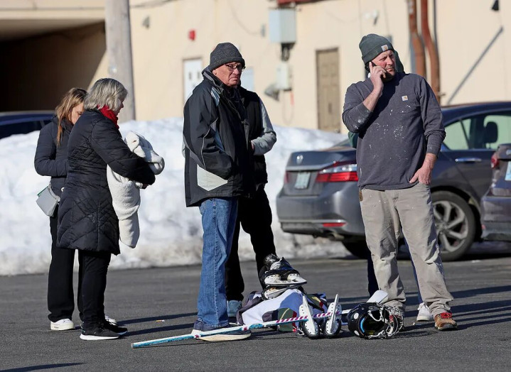 当地时刻2026年2月16日,好意思国罗得岛州波塔基特,冰球场枪击事件发生后,通顺员家长合股在林奇竞技场隔邻。图/视觉中国