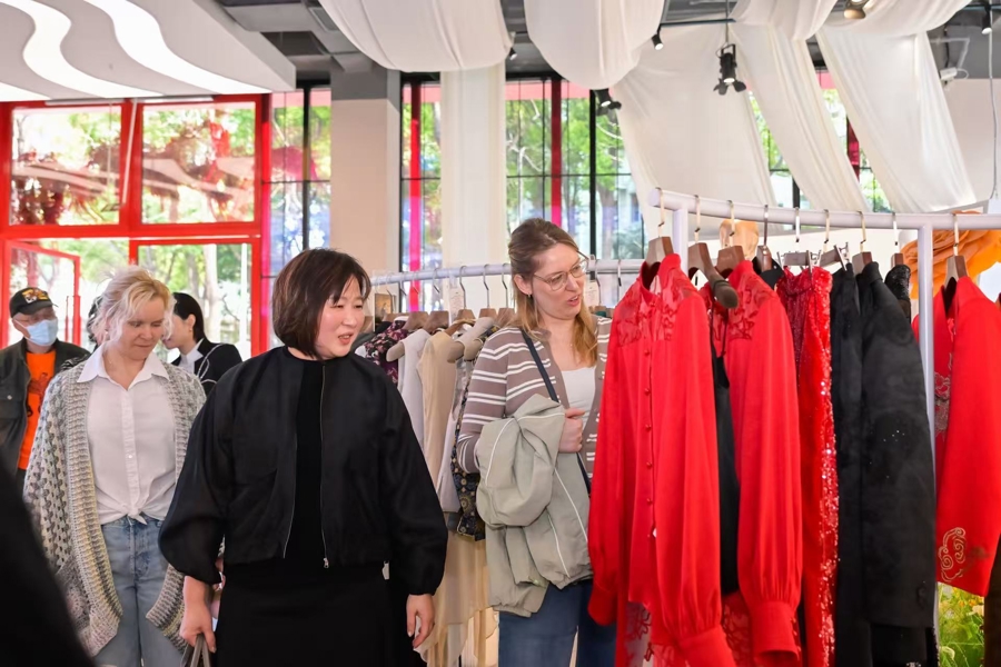 本届上海时装定制节不仅是国东说念主抒发文化自信的平台,更是中中文化对听说播的蹙迫窗口。记者在现场看到,特质光显的新登第衣饰,也时常眩惑不少番邦搭客安身连系。为此,定制节特地打造了国际友好型消费场景,推出多言语就业、扶助国际支付以及“即买即退”等便利次序。现场袭取双语叮嘱,并配备双语就业东说念主员,一楼还设有退税点,境外消费者可径直手理退税手续。
