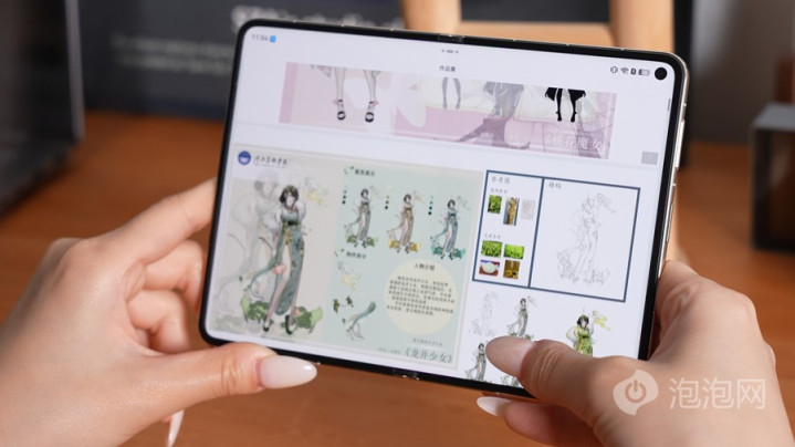 既然叫“大阔折”,在尺寸上它和旧年的PuraX就有很大永别,扫数是另一条赛说念。外屏5.4英寸,内屏7.7英寸,齐是接近A4纸的黄金比例,看本体稀奇惬意,比拟二折叠那种险些方形的内屏,阔型屏能充分旁边起屏幕空间,浮现更多本体。